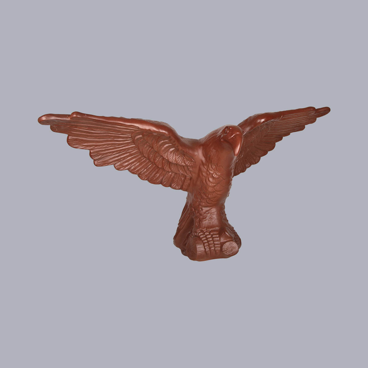 Das Modell (mit ausgebreiteten Flügeln) für den Adler haben wir als Dachschmuck zur Befestigung auf einem Firstziegel konstruiert.