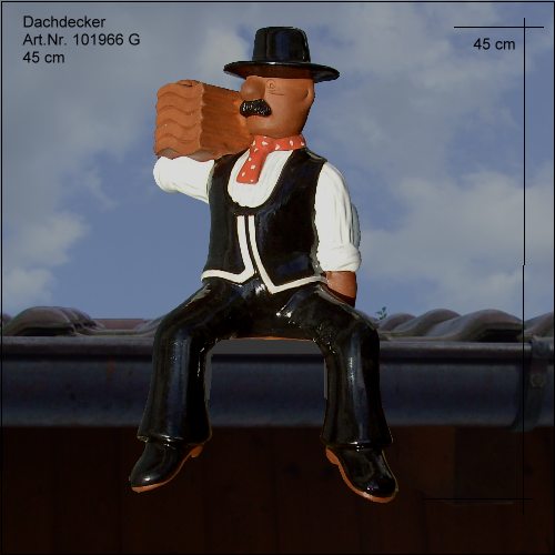 Dachdecker aus Ton als Rinnenfigur –   naturgetreu glasiert – inkl. Halterung aus Edelstahl für die Dachrinne