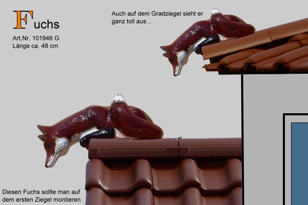 Der Adler kann auch nachträglich auf verschiedenen Firstziegeln montiert werden. Der Artikel wird mit einem Komplettsystem mit Befestigungszubehör und einer Montageanleitung geliefert.