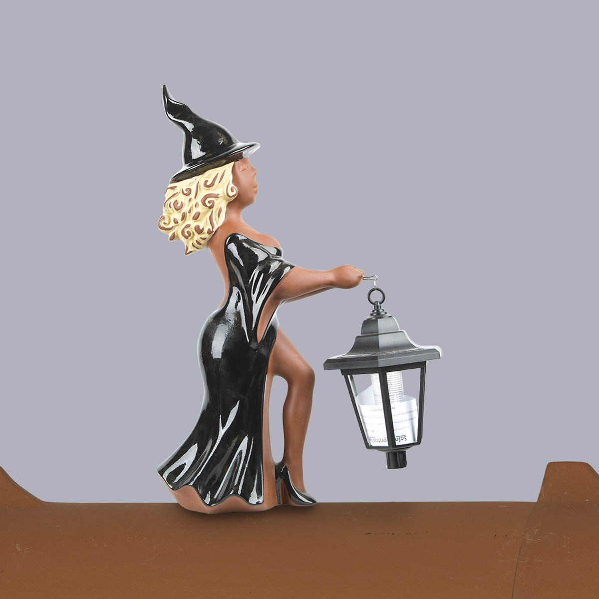 Hexe stehend mit Solarlaterne aus Ton