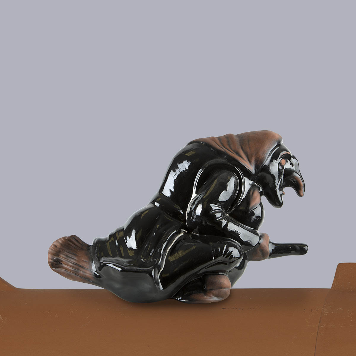 Hexe aus Ton als Dachschmuck – glasiert mit Dachziegelglasuren
