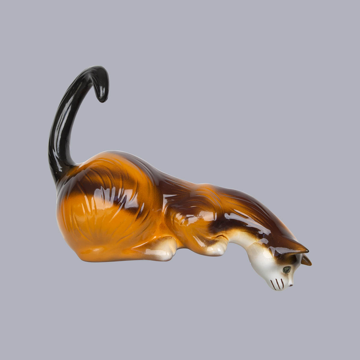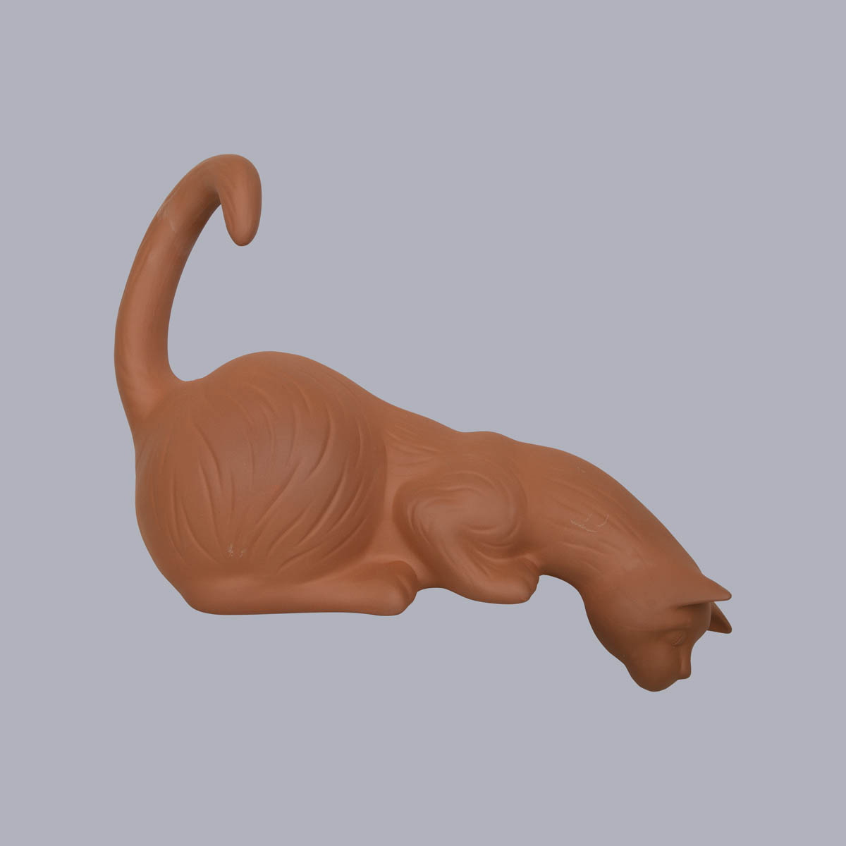 lauernde Katze aus Ton als Dachschmuck