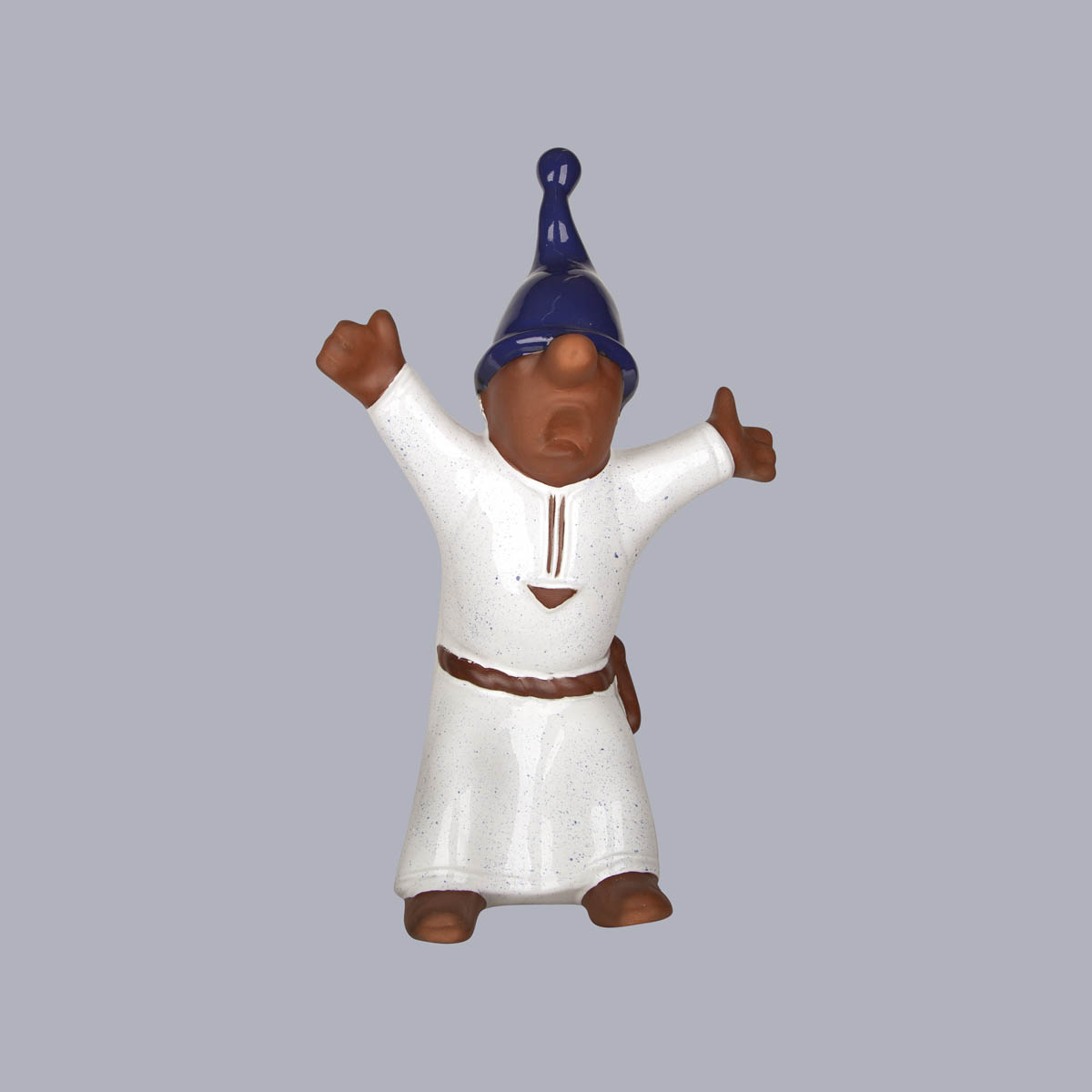 | Farbe | weiss, weiss-blaue Sprenkel, blaue Mütze, weiss, blaue Mütze |