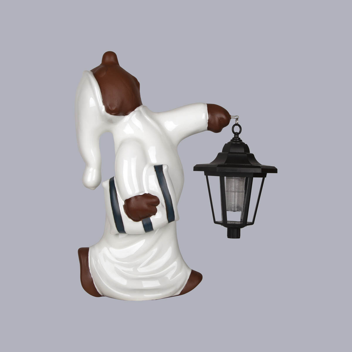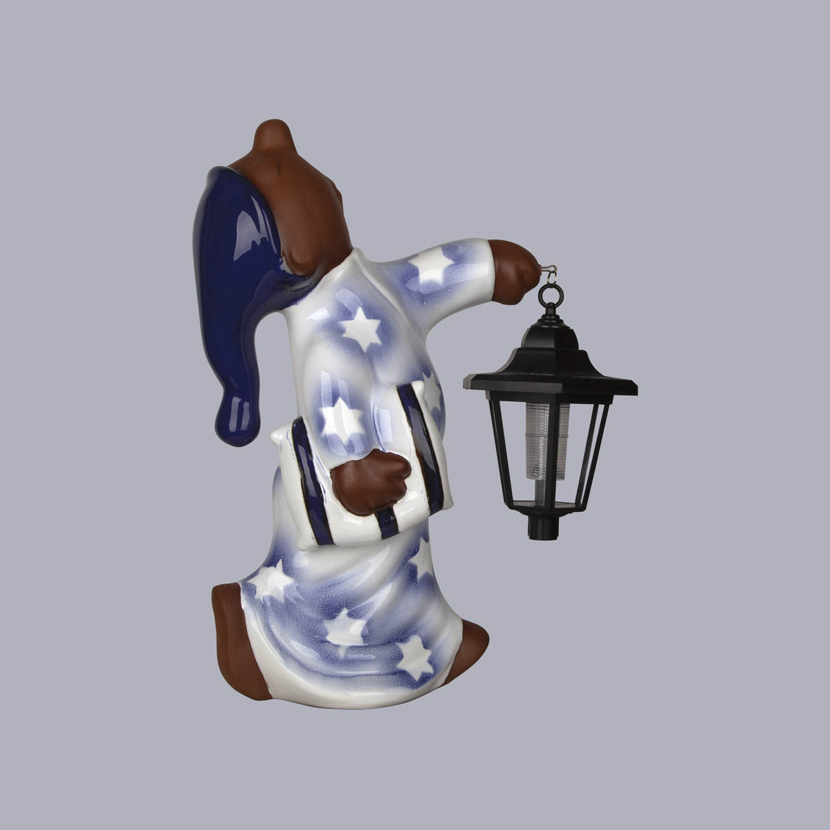 Schlafwandler Kai mit Kissen und Solarlaterne aus Ton als Dachschmuck